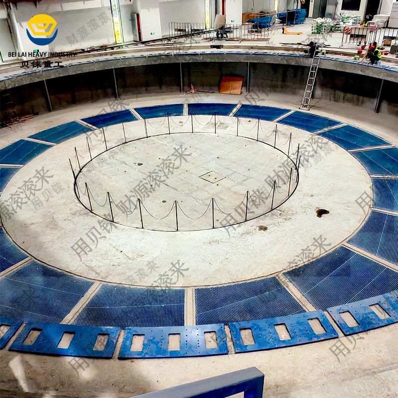 臺(tái)面直徑10m,載重14噸,行程6.5米。采用不銹鋼316L材質(zhì)。
