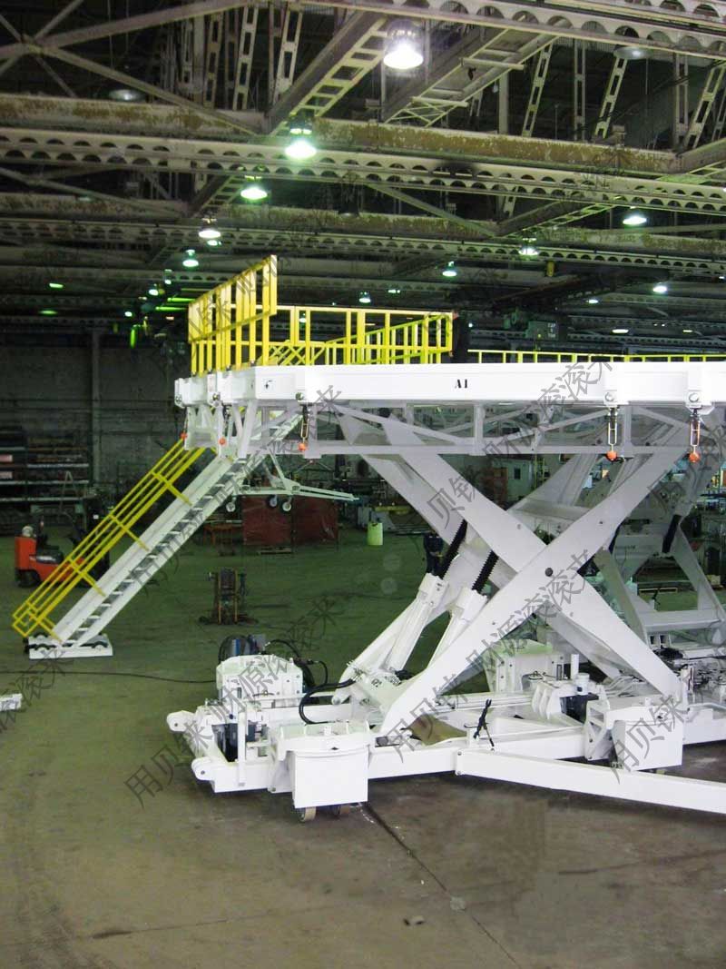 剪刀式升降機(jī)測試平臺型: 用于航空航天工業(yè)的定制剪刀式升降機(jī)的測試平臺尺寸: 18287mm × 19151mm提升: 3500mm能力: 1 81